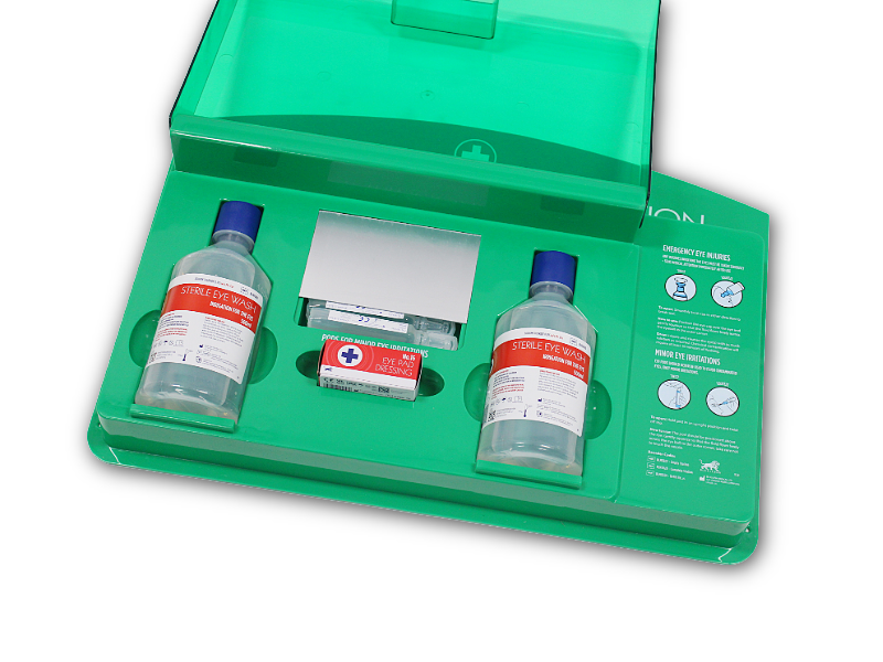 •Includes 2 x 500ml Eye Wash, 2 x Boxed Eye Dressings and 6 x 20ml Eye Wash Pods