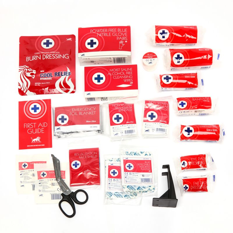 Blue Lion Catering First Aid Kits contain a large assortment of first aid items perfectly suited to treat injuries in a catering setting and in compliance with the BS 8599-1 standard.