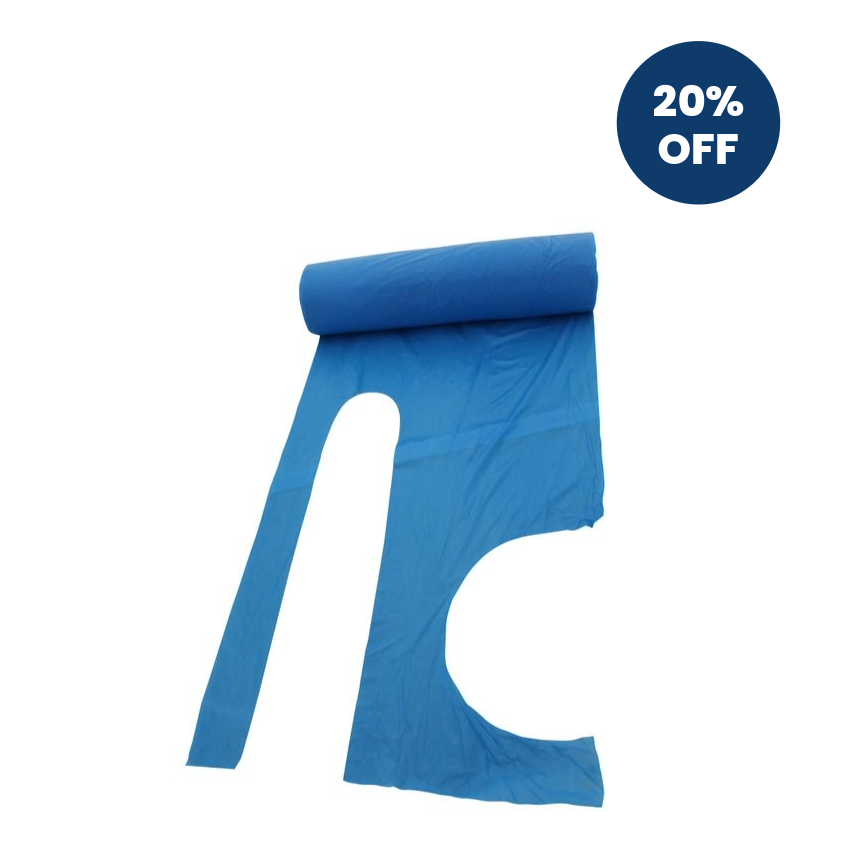 Healthgard disposable polythene aprons with halter neck and waist ties are supplied on rolls for maximum space use.